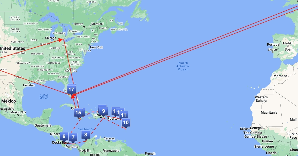 us and caribic by plane, ship, car