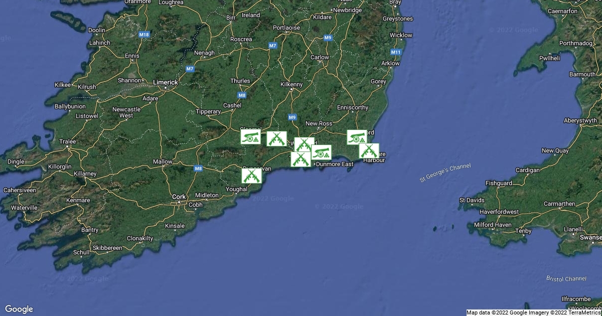 Map showing Ireland and locations of landing.