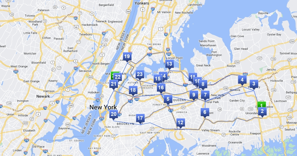 Map of 3 paths from LI to NY, NY
