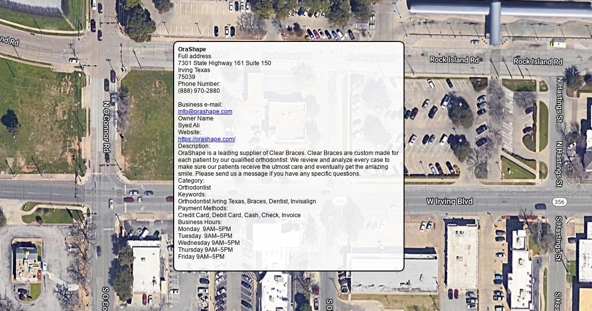 Full address 7301 State Highway 161 Suite 150 Irving Texas 75039 Phone Number: (888) 970-2880 Business e-mail: info@orashape.com