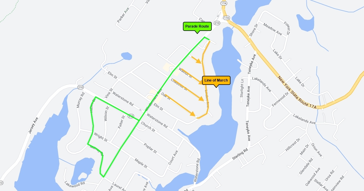 Parade will go down Windermere right on 210 (Jersey Ave), left on Hazen St., left on Murray Road, left and back down Windermere ending at Winstanley Park. LOM-Linden Ave Side Streets