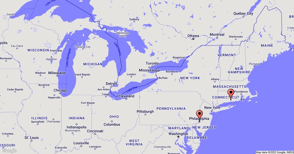 Map with points for Philadelphia & Lyme, CT