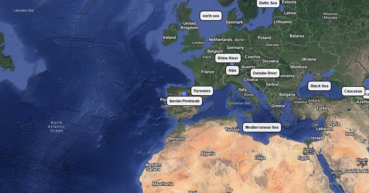 Physical Map of Europe (Tuesday)