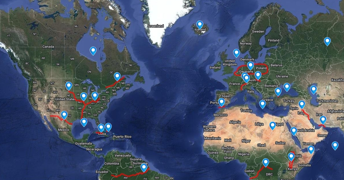 This is a map which shows the locations of the top 60 essential physical map locations in the world.