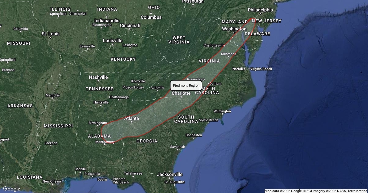 Highlighted area is piedmont region of the south