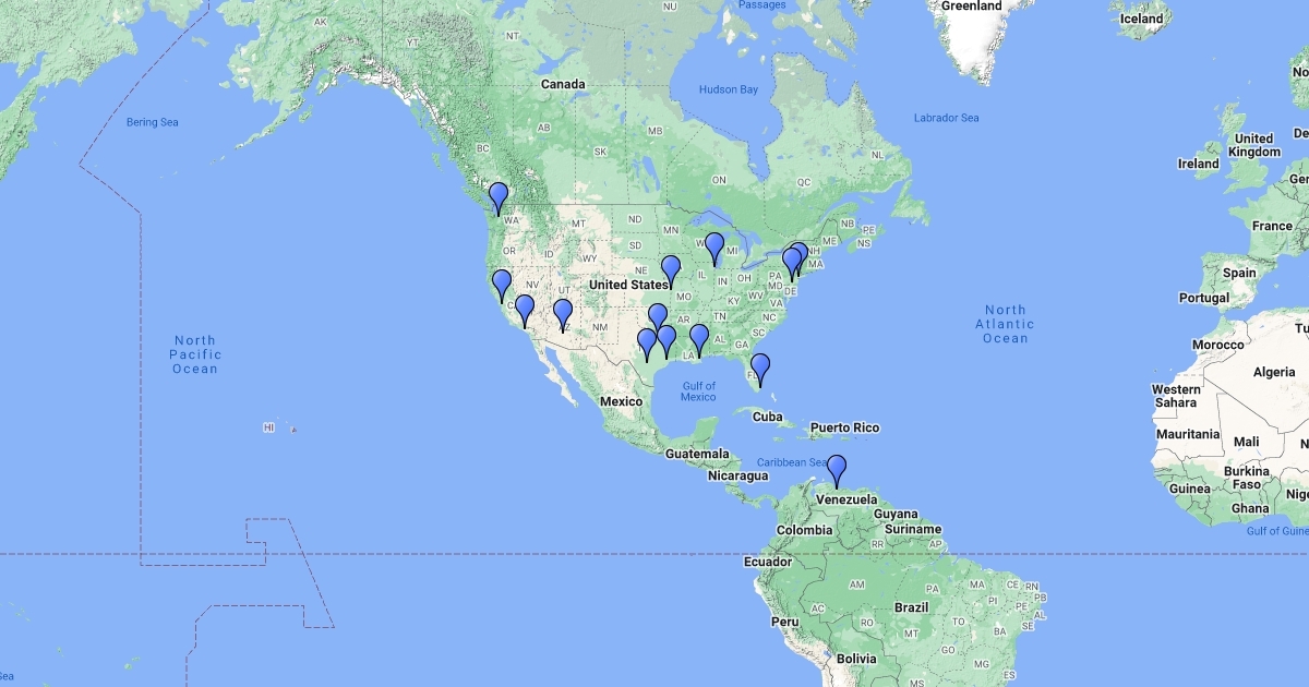 Just a map that pin points cities in the US