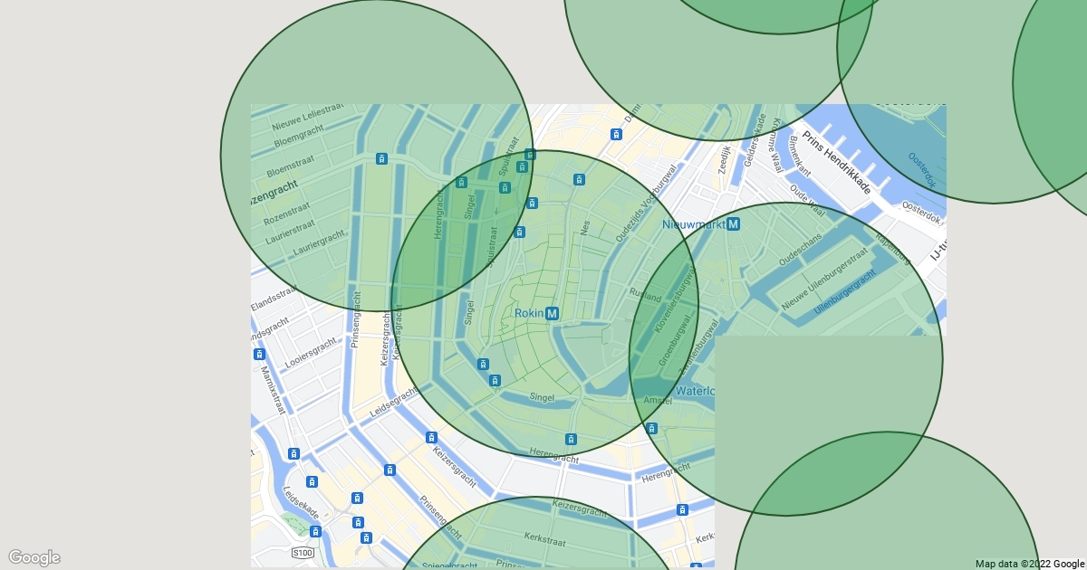 Places in Amsterdam within 500 meters of public transport