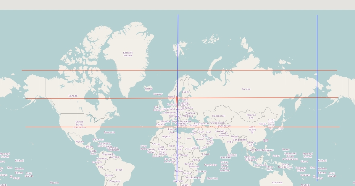 Mapa con ubicación de trópico de cáncer, ecuador, trópico de capricornio, meridiano de Greenwich,etc