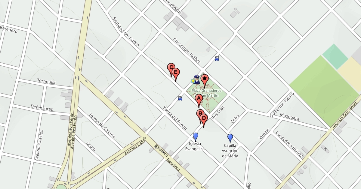 Topografía de la plaza "Granaderos de San Martín", ubicada en Morón Sur.