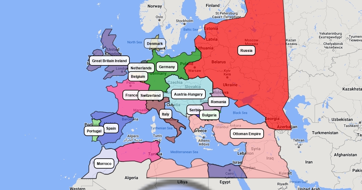 A map of the Europian countries in 1900