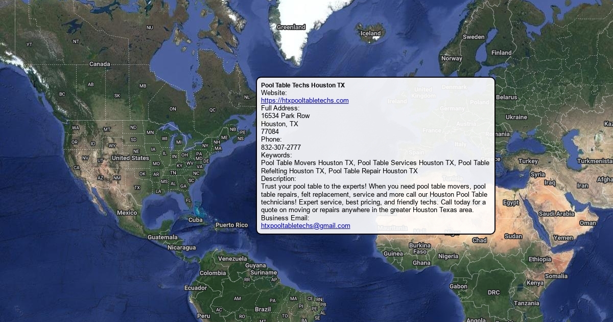 Website: https://htxpooltabletechs.com Full Address: 16534 Park Row Houston, TX 77084 Phone: 832-307-2777
