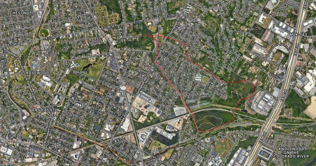 Start at Givens District Park then meanders down to Boggy Creek then back up again.