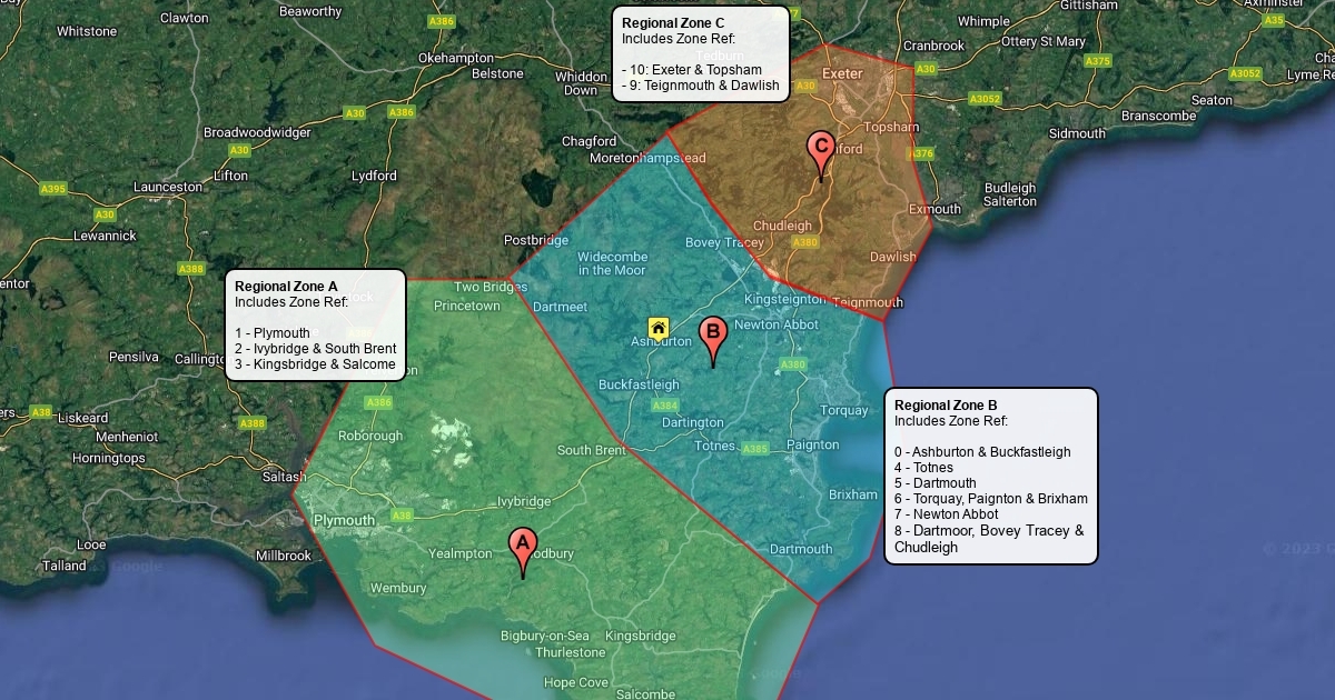 Regional zones for local deliveries