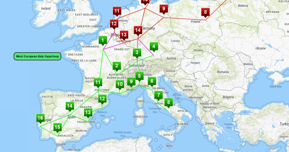 Potential Future Hyperloops of Europe