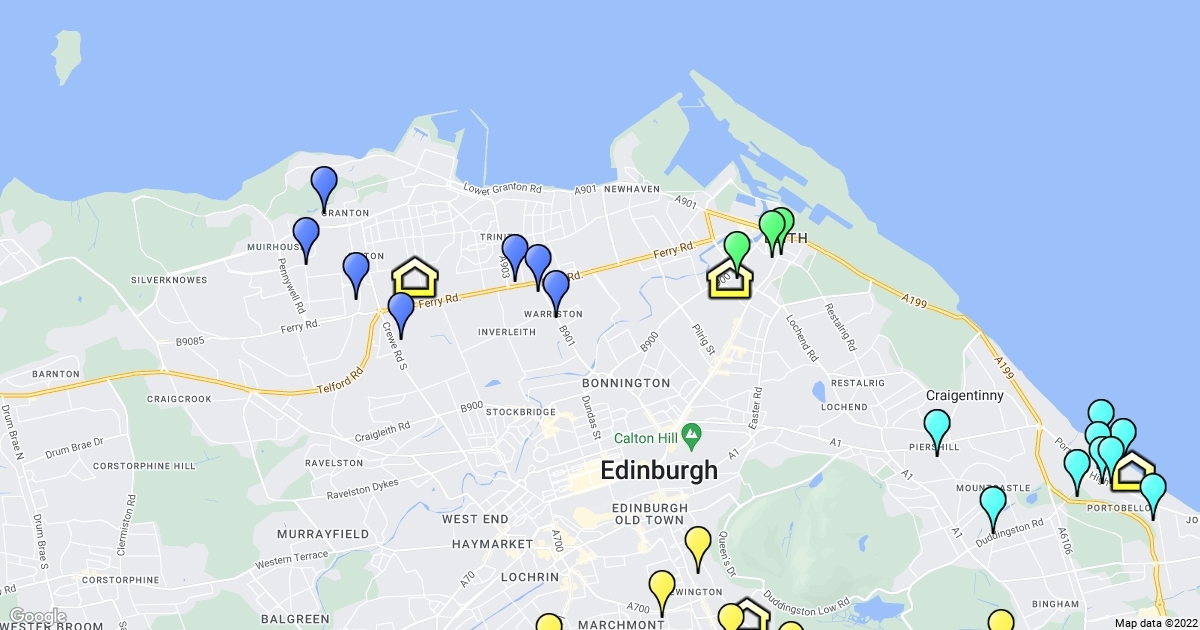 A map of all the private nurseries and their respective distances from Edinburgh Leisure facilities