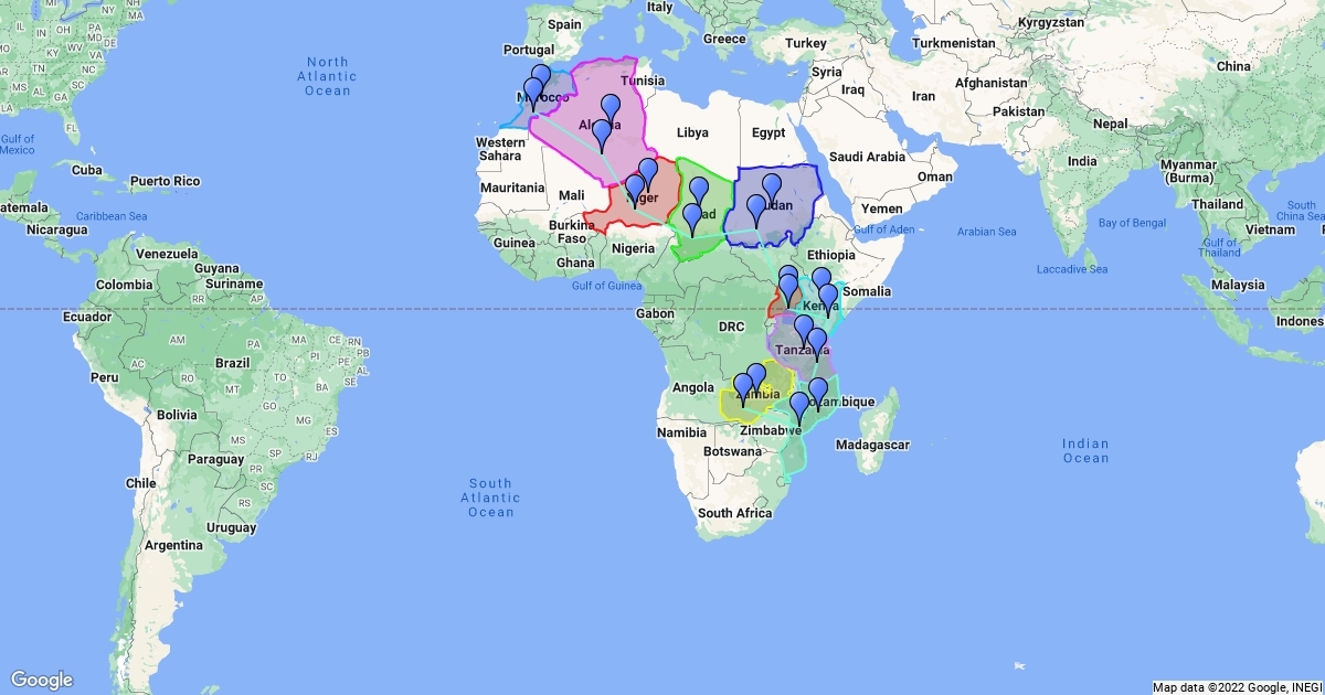 Map for project with the 10 countries.