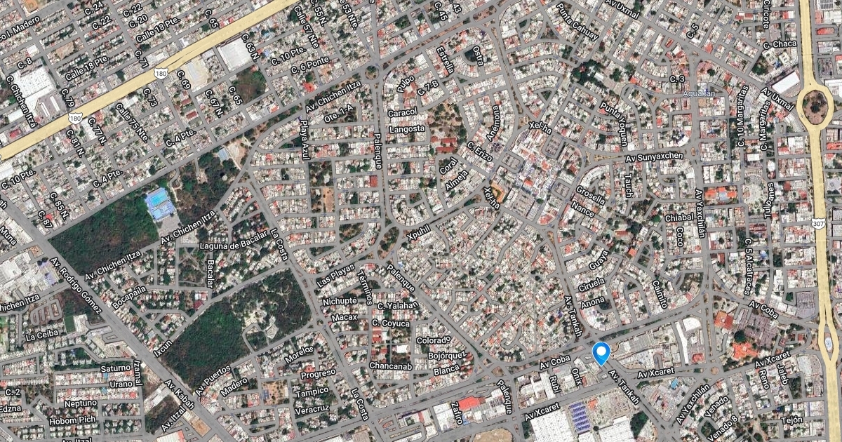 Mapa con los puntos morados de Cancun