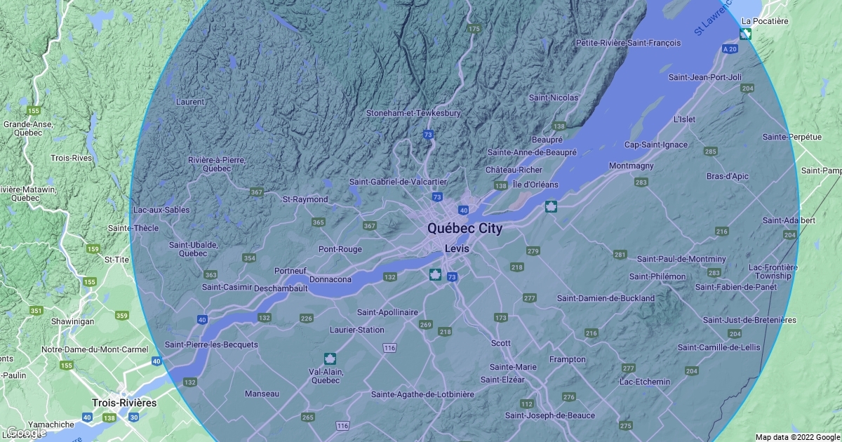 100km radius from Quebec City