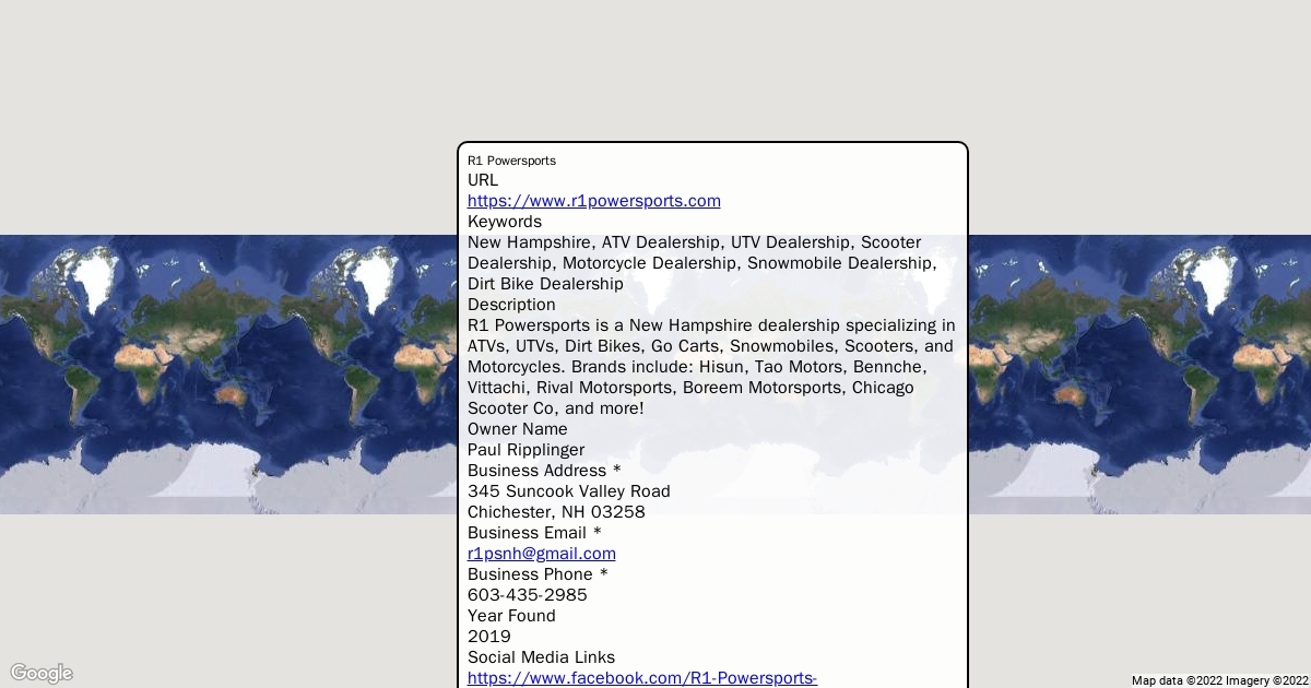 R1 Powersports is a New Hampshire dealership specializing in ATVs, UTVs, Dirt Bikes, Go Carts, Snowmobiles, Scooters, and Motorcycles. Brands include: Hisun, Tao Motors, Bennche, Vittachi, Rival Motorsports, Boreem Motorsports, Chicago Scooter Co, and more!