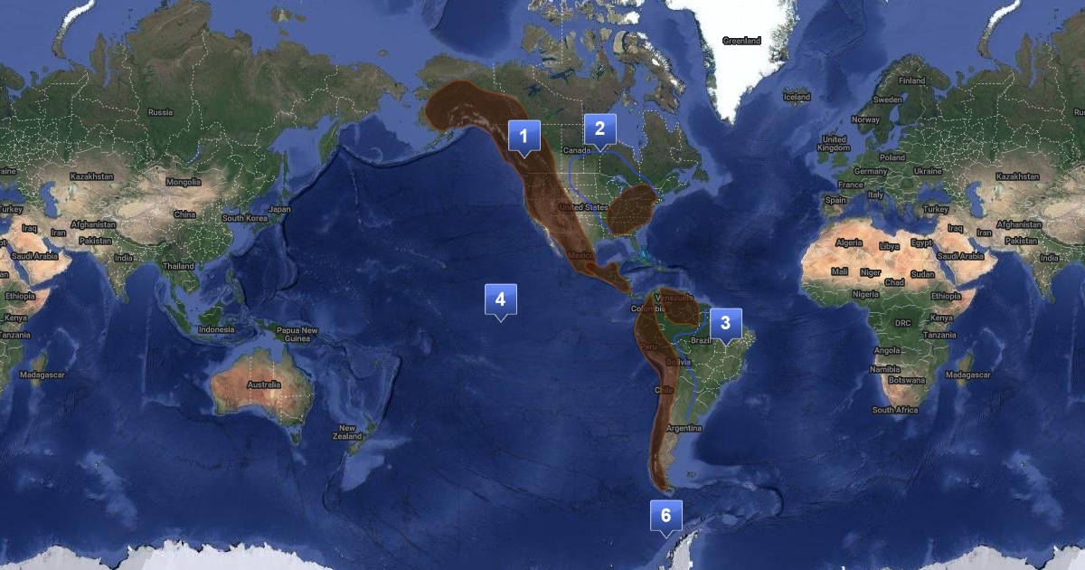 Mapa sore el relieve de america