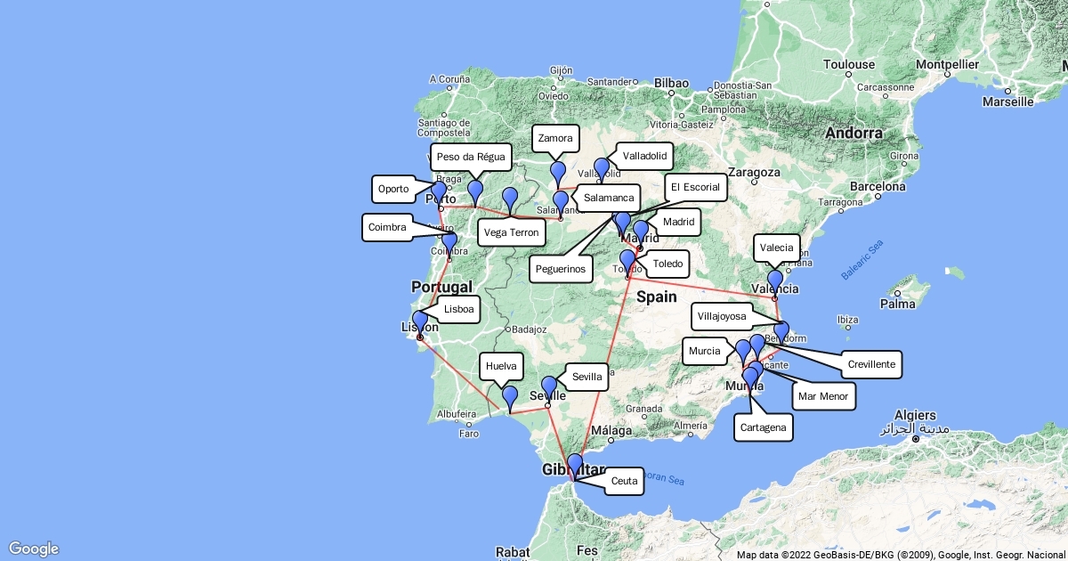 MAPA DEL ITINERARIO POR ESPAÑA