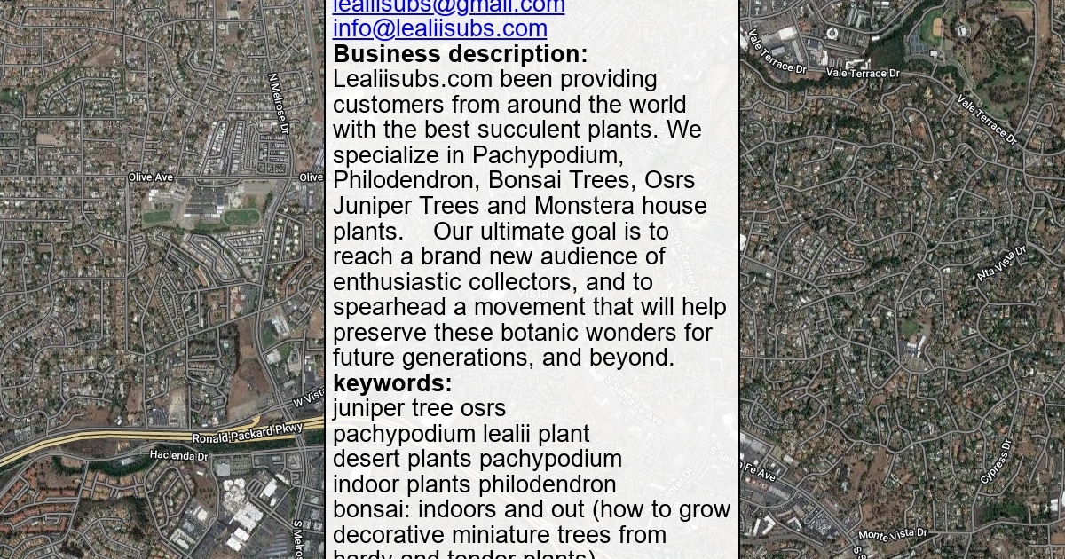 Lealiisubs.com been providing customers from around the world with the best succulent plants. We specialize in Pachypodium, Philodendron, Bonsai Trees, Osrs Juniper Trees and Monstera house plants. Our ultimate goal is to reach a brand new audience of enthusiastic collectors, and to spearhead a movement that will help preserve these botanic wonders for future generations, and beyond.