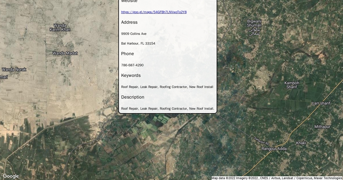 Website https://goo.gl/maps/54GFBh7LNVwoTo2Y8 Address 9909 Collins Ave Bal Harbour, FL 33154 Phone 786-687-4290 Keywords Roof Repair, Leak Repair, Roofing Contractor, New Roof Install Description Roof Repair, Leak Repair, Roofing Contractor, New Roof Install.