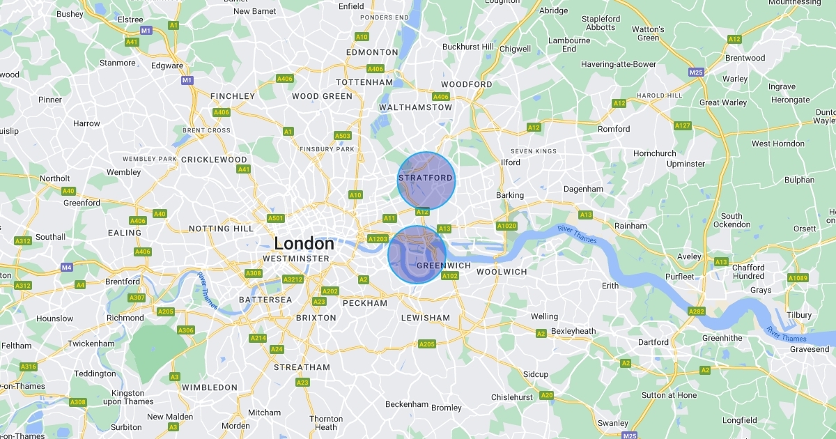 for the geo IA outlining the location of isle of dog and stratford