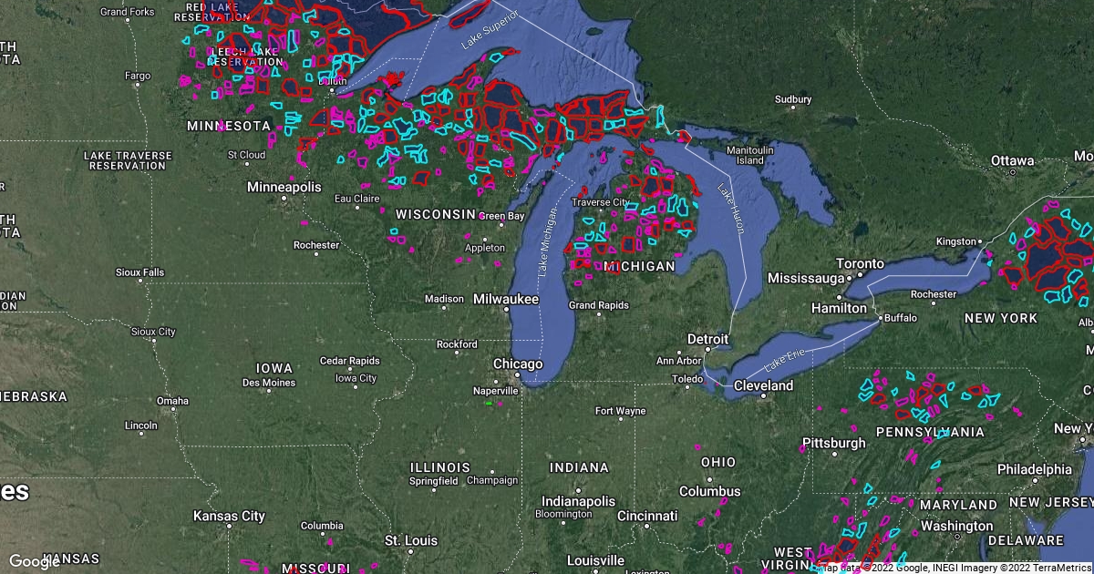 Areas 2+ miles from major roads