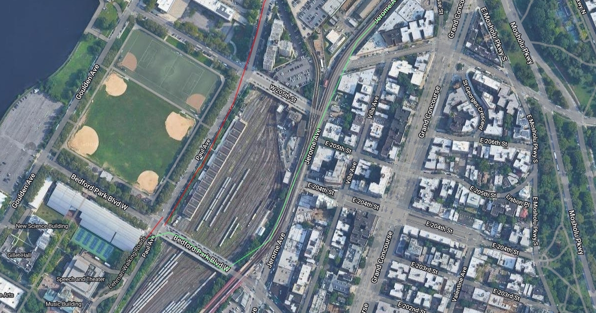 Walking route from Tracey Towers to Lehman College