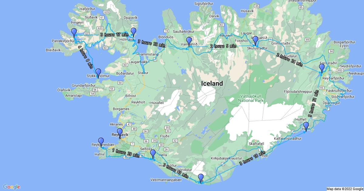 Route through Iceland