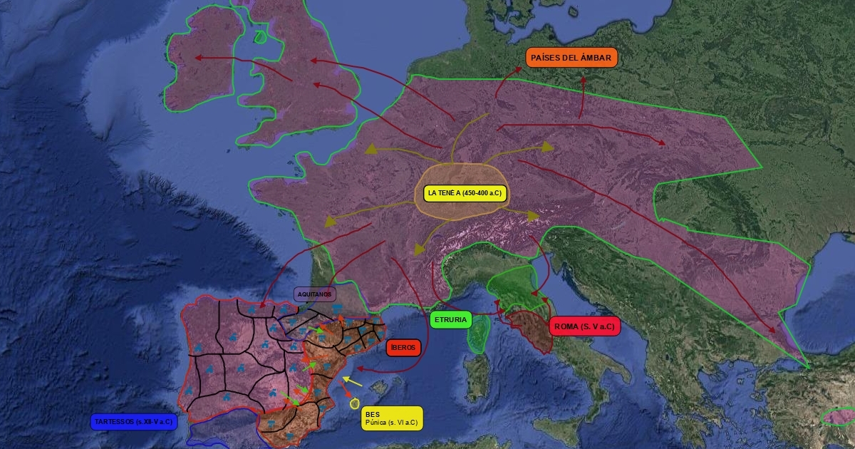 2º mapa de la distribución y relaciones de las poblaciones de Europa de la Edad del Hierro