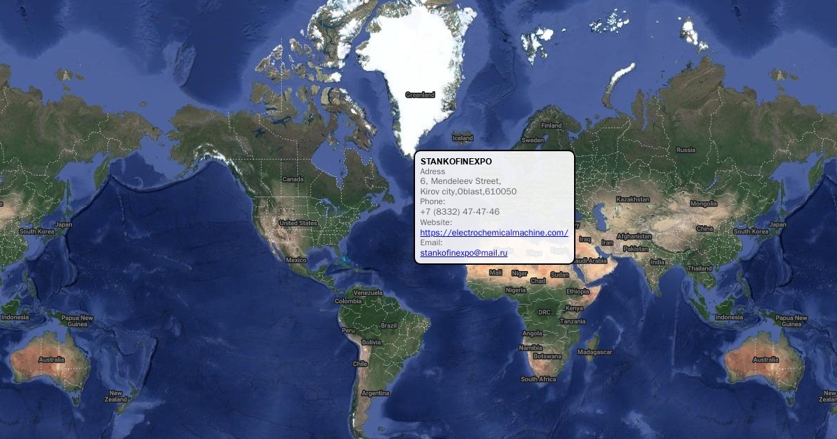 Adress 6, Mendeleev Street, Kirov city,Oblast,610050 Phone: +7 (8332) 47-47-46 Website: https://electrochemicalmachine.com/ Email: stankofinexpo@mail.ru