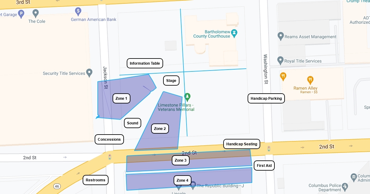 Map including zones for Salute