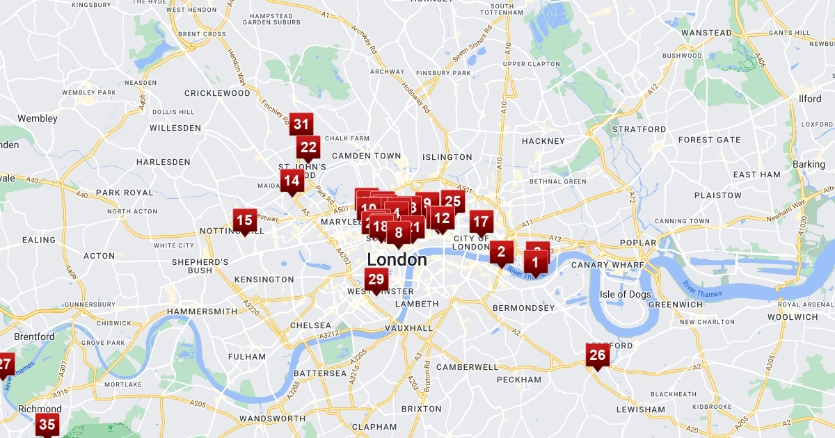 Map of Sam Smiths pubs in London