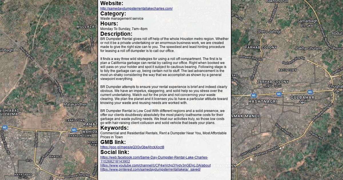 Address: 600 W McNeese St, Lake Charles, LA 70605 Phone: 337-435-8002 Website: http://samedaydumpsterrentallakecharles.com/ Category: Waste management service