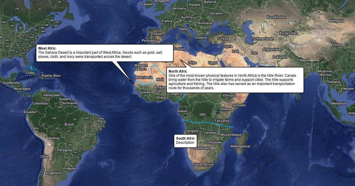 Map and descriptions of different regions of Africa