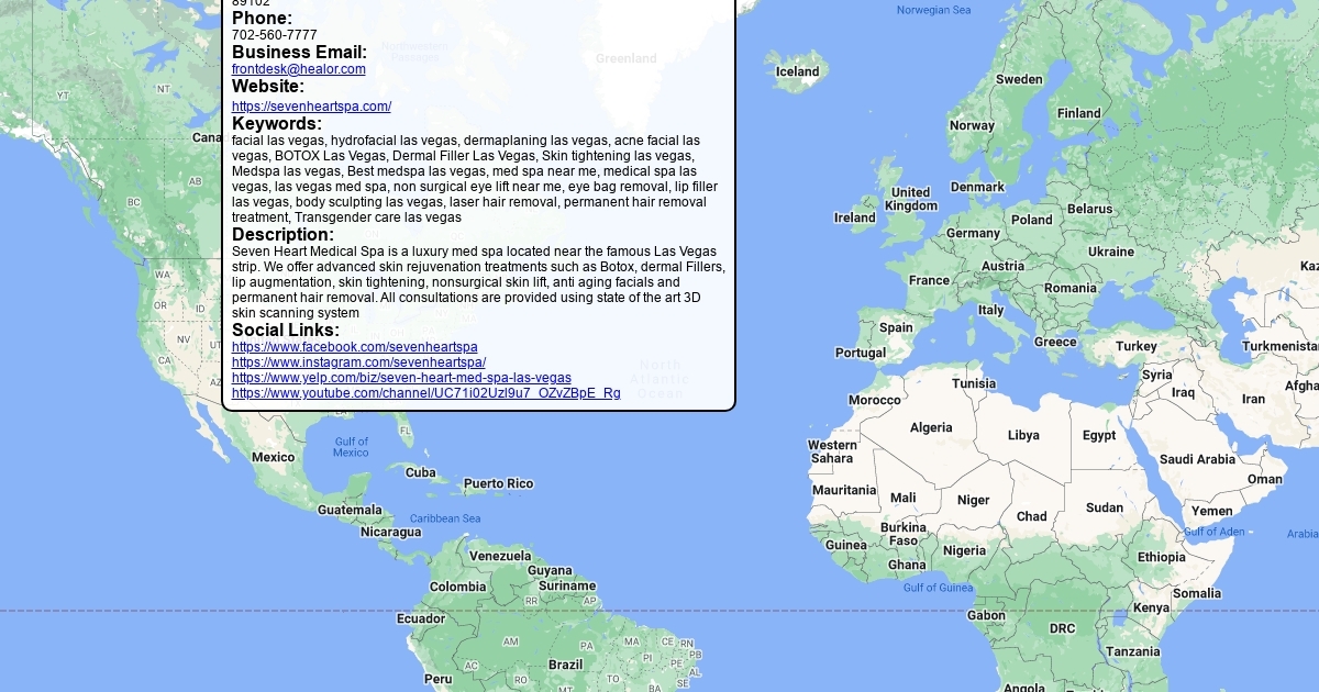 Seven Heart Medical Spa is a luxury med spa located near the famous Las Vegas strip. We offer advanced skin rejuvenation treatments such as Botox, dermal Fillers, lip augmentation, skin tightening, nonsurgical skin lift, anti aging facials and permanent hair removal. All consultations are provided using state of the art 3D skin scanning system