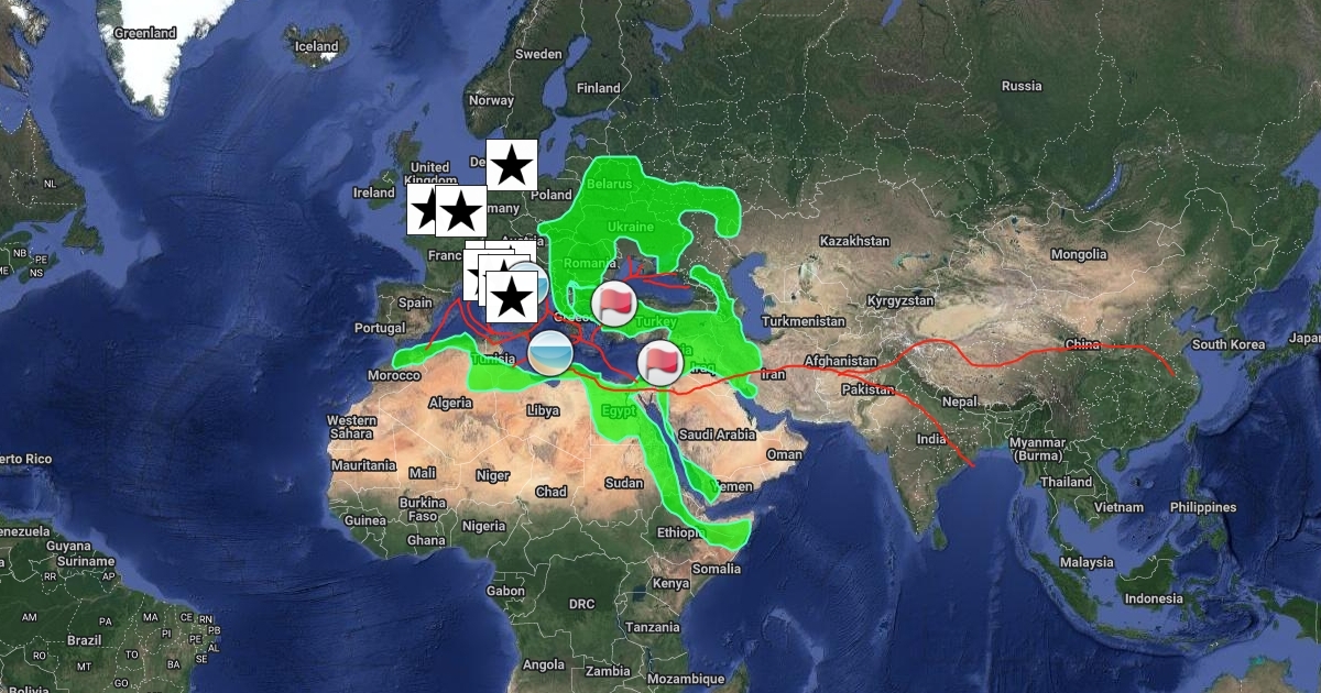A map showing the key areas and routes of the Renaissance Period