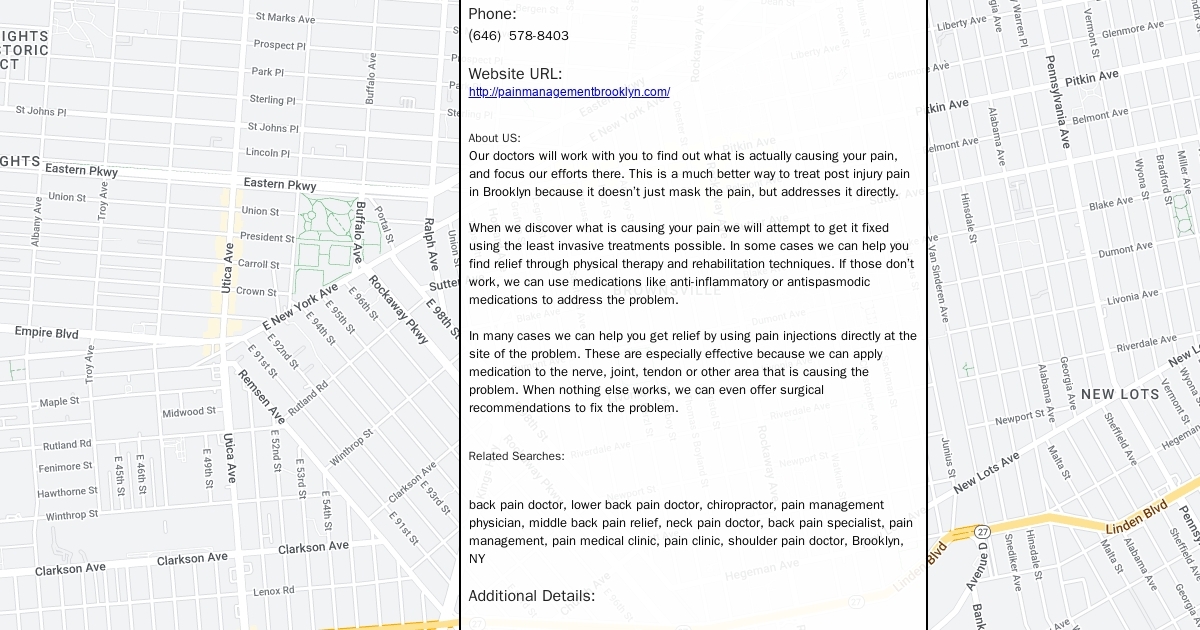 Our doctors will work with you to find out what is actually causing your pain, and focus our efforts there. This is a much better way to treat post injury pain in Brooklyn because it doesn’t just mask the pain, but addresses it directly.