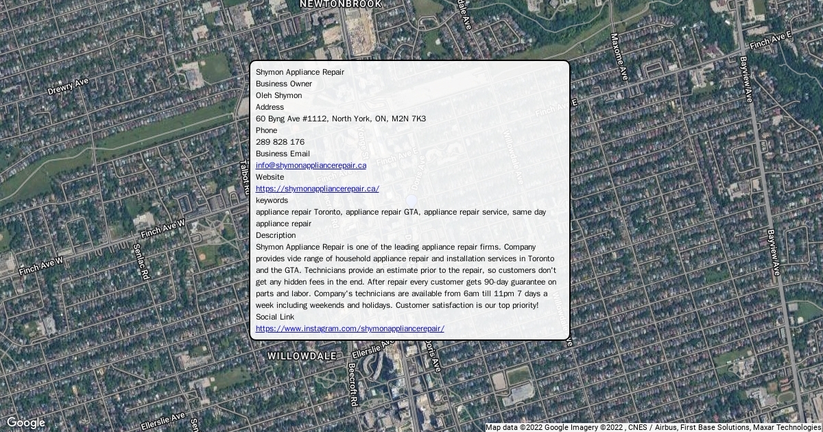 Shymon Appliance Repair is one of the leading appliance repair firms. Company provides vide range of household appliance repair and installation services in Toronto and the GTA. Technicians provide an estimate prior to the repair, so customers don't get any hidden fees in the end. After repair every customer gets 90-day guarantee on parts and labor. Company's technicians are available from 6am till 11pm 7 days a week including weekends and holidays. Customer satisfaction is our top priority!