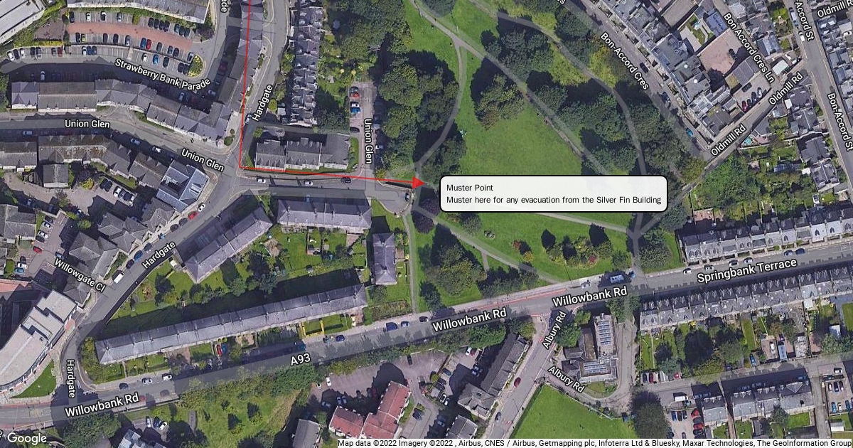 Evacuation route from the building to muster point.