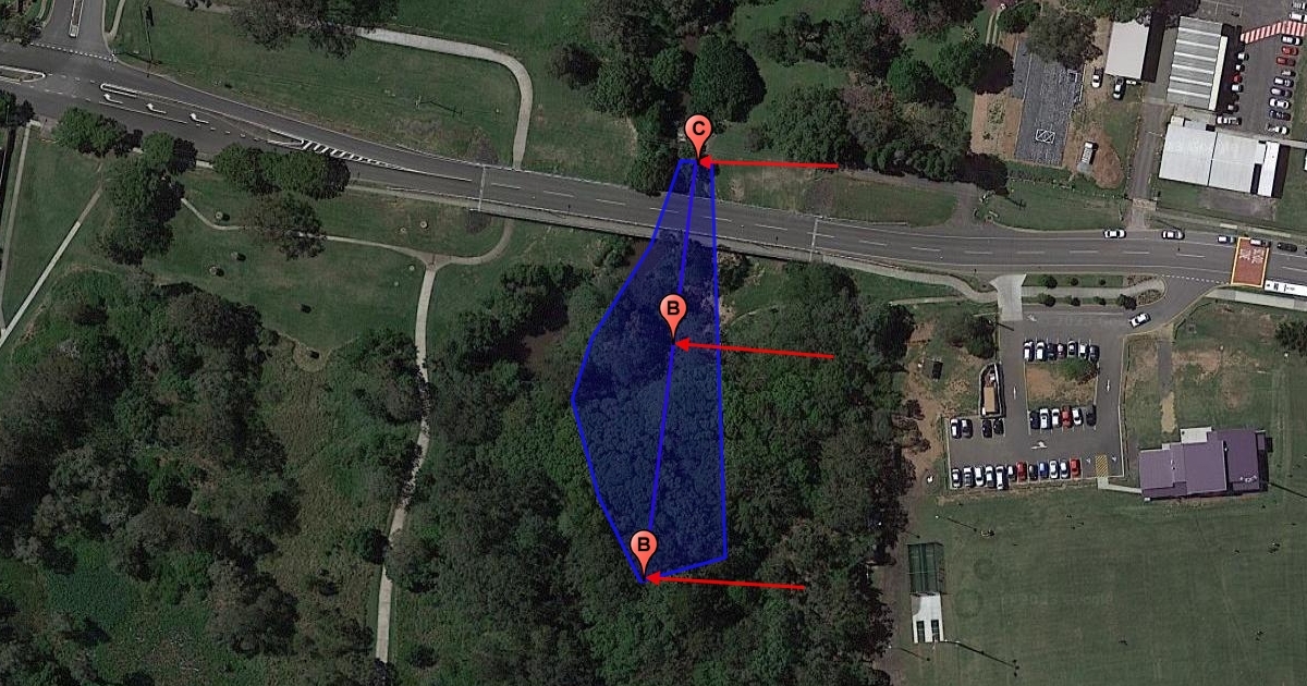 The site is a 100m long transect with three assessment points ('a', 'b', 'c'). The width of the transect equals the width of the riparian corridor.