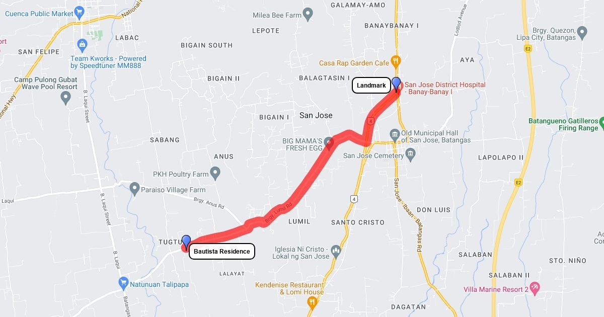 Distance from Bautista Residence to the Landmark