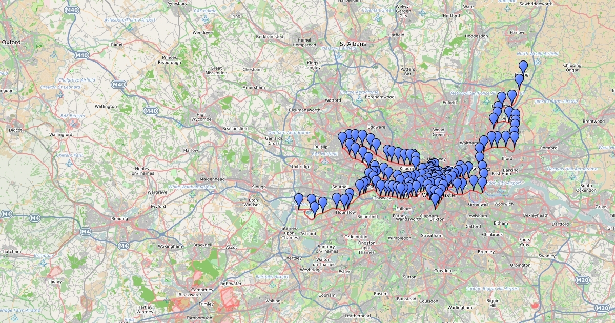 A map showing the longest route on the tube without vising 2 station twice