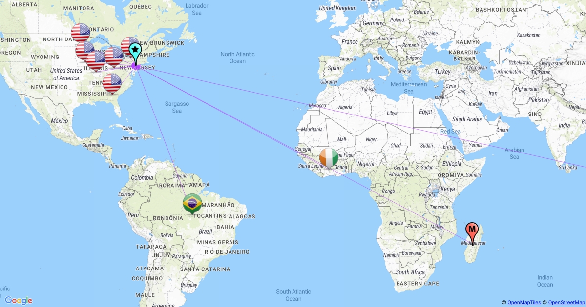 A map of producers of raw ingredients required to manufacture Snickers bars.