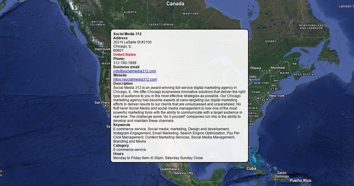 Social Media 312 is an award-winning full-service digital marketing agency in Chicago, IL. We offer Chicago businesses innovative solutions that deliver the right type of audience to you in the most effective strategies as possible. Our Chicago marketing agency has become experts at nano-targeting.