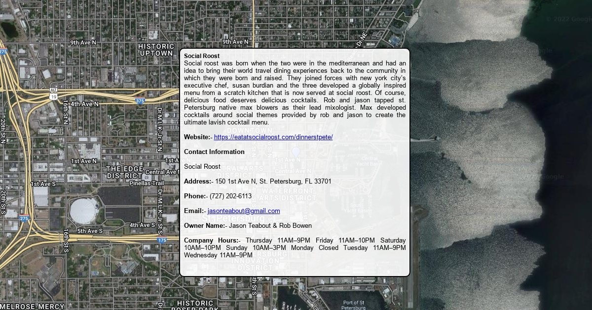 Social roost was born when the two were in the mediterranean and had an idea to bring their world travel dining experiences back to the community in which they were born and raised. They joined forces with new york city’s executive chef, susan burdian and the three developed a globally inspired menu from a scratch kitchen that is now served at social roost. Of course, delicious food deserves delicious cocktails. Rob and jason tapped st. Petersburg native max blowers as their lead mixologist. Max developed cocktails around social themes provided by rob and jason to create the ultimate lavish cocktail menu.