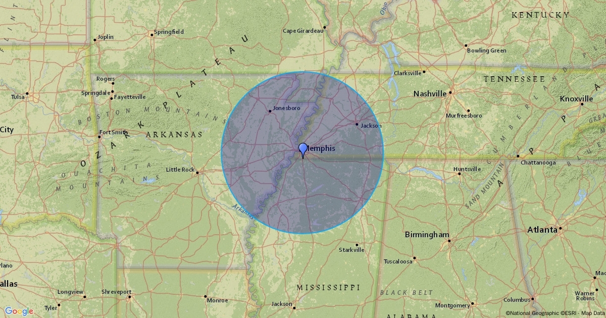 100 mile radius of Southaven, MS