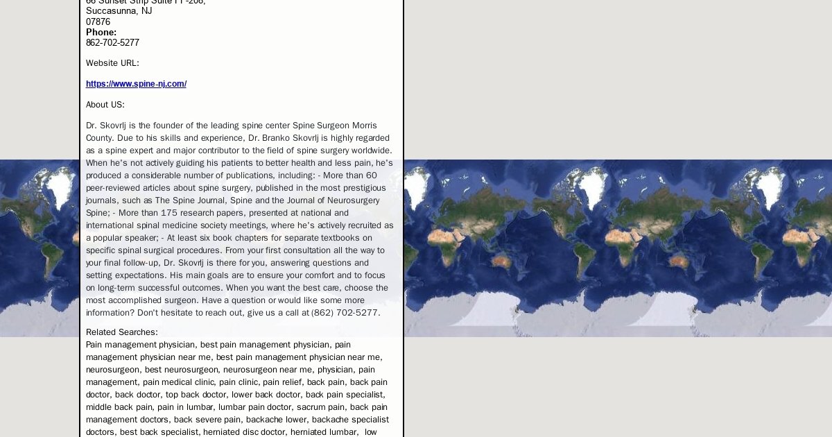 Dr. Skovrlj is the founder of the leading spine center Spine Surgeon Morris County. Due to his skills and experience.